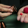 In fact, you can perform a variety of moves with the Mini Cups and Balls. Vanishes, transpositions, transformations, and so on. Most of what can be achieved by regular-sized cups can be done by the mini cups. You could perform one-handed if you wished, or perform a 3 shell game routine.