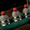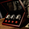 - L’ensemble est composé de : mousse de coton antichoc×2+boîte en bois de collection+tasse gravée×3+boule en soie dorée×4