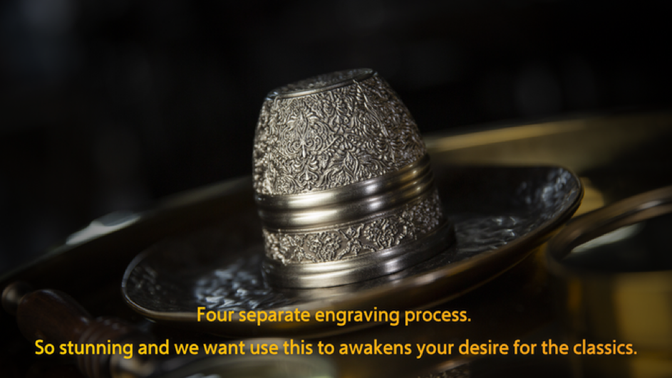 Chaque gobelet est repoli et examiné après chaque processus pour s’assurer de l’exhaustivité et de la précision de chaque gravure.
