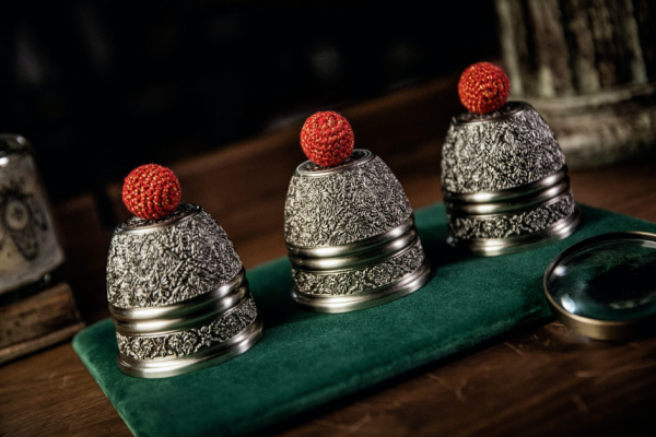 Le matériau de base des gobelets et balles Artisan est le laiton, puis il est soumis à quatre processus de gravures différents.