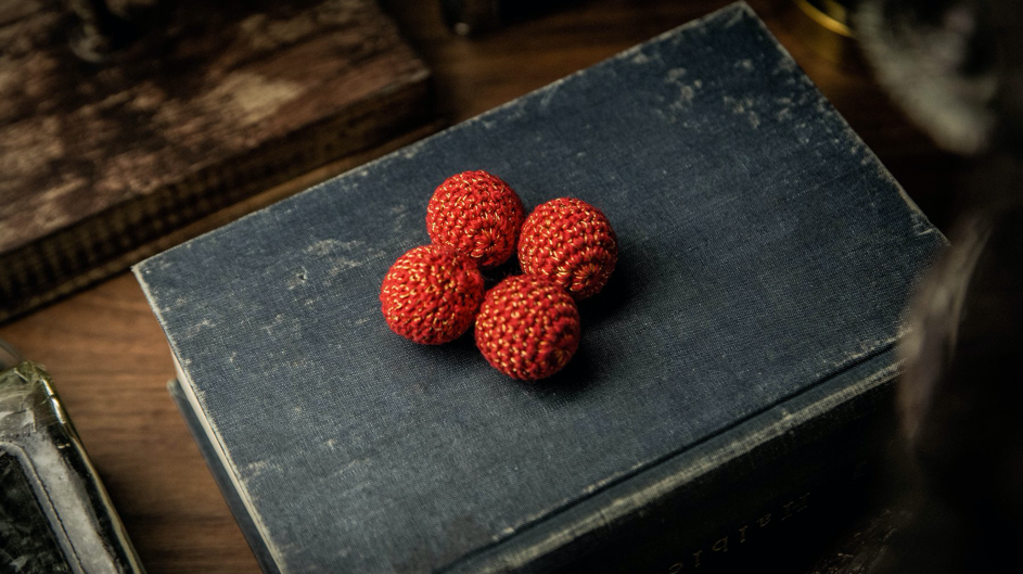 - Balle de fil de dentelle rouge/or pesant 6 g, diamètre 29 mm.