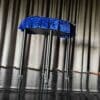 Two flight cases for storage and transportation. One for the four feet and one the table + tablecloths and another for the table.