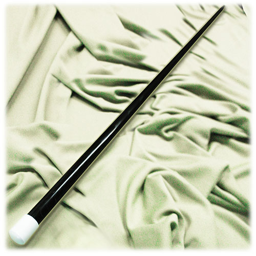 Une canne noire est frappée légèrement au sol et semble solide. En un clin d’oeuil, la canne disparaît et se transforme en deux beaux foulards de soie, un noir et un blanc.