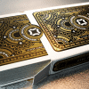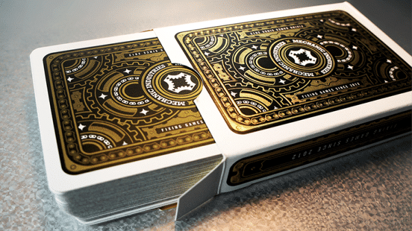 This very limited edition set has been created to celebrate Mechanic Industries’ 5th birthday in 2017. We have gone all out with fully stacked tuck cases embossed and wrapped with foil inside and out. Cards have metallic Pantone inks on both the backs and faces. The reflective nature of the card boxes can be leveraged to sneakily peek at what card is being dealt! The Glimmer and Shiner Decks feel great straight out of the box, printed by USPCC on high quality Bicycle stock with Magic finish. Only 2,500 Glimmer Decks will EVER be printed, and are available exclusively as part of this set.
