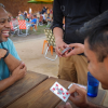 Deux cartes à jouer séparées sont sélectionnées et affichées proprement des deux côtés. Lentement et équitablement, les deux cartes sont pressées l’une contre l’autre et « transformées » en une carte d’aspect très bizarre qui montre les deux couleurs et valeurs différentes sur sa face ! Cette carte très spéciale créée par magie peut être entièrement examinée ou même donnée pour un souvenir inoubliable !