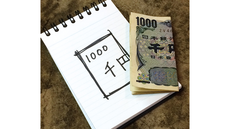 3. The drawing miraculously transforms into a real bill! The drawing simultaneously vanishes from the pad. Open up the banknote to display that it is genuine money.