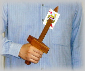 Please note that this is a very cool and clever mechanical piece and not to be confused with a normal Card Sword. With this version, the card is really impaled on the blade.