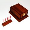 The box measures approximately 8cms wide, 6cms high and 10.5cms deep and has been completely handcrafted from natural aged teak wood with a lightly distressed oil finish. The brass pegs are each approximately 5cms long and 3mm in diameter and come complete with a custom designed display stand.